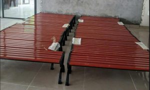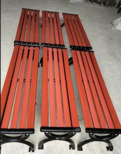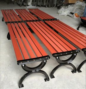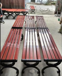 Chất liệu: Khung bằng gang sơn tĩnh điện, kết hợp với nan nhựa composite, nan gỗ lim nam phi hoặc thép hộp sơn tĩnh điện giả vân gỗ